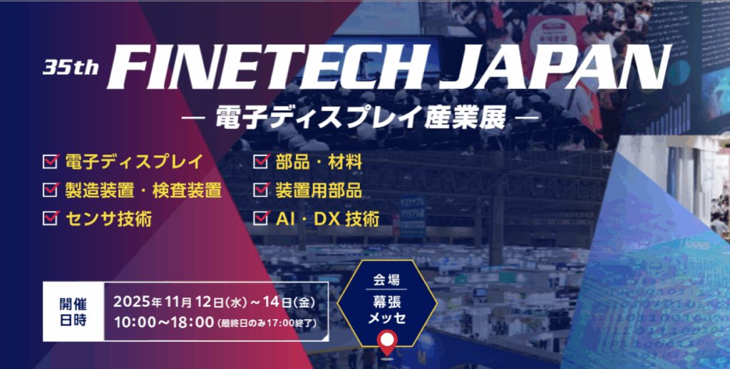LCD トピックス 展示会告知 _ 10月 3, 2025 【2025年11月12日(水)~14日(金)】第35回ファインテックジャパン~電子ディスプレイ産業展~に出展します。 お世話になっております。LCD営業部です。 第35回ファインテックジャパン~電子ディスプレイ産業展~に出展します。 以下、展示会出展情報となります。 日時:2025年11月12日(水)~11月14日(金) 場所:幕張メッセ 第2ホール 小間番号:12-40 ご来場のご登録はこちら 皆様のご来場、心よりお待ちしております。 NACCのブースはこちらです↓↓↓ TECHNO-FRONTIER 2025 第38回 EMC・ノイズ対策技術展に出展いたします。5月 26, 2025